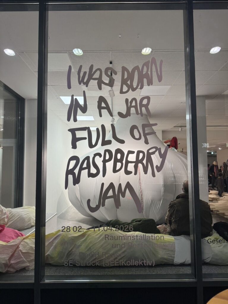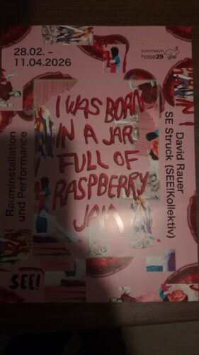Heute war ich bei der Ausstellungseröffnung von „I was born in a jar full of raspberry jam“ in der Hase29 in Osnabrück. Eine Rauminstallation und Performance von David Rauer und SE Struck (SEE!Kollektiv).